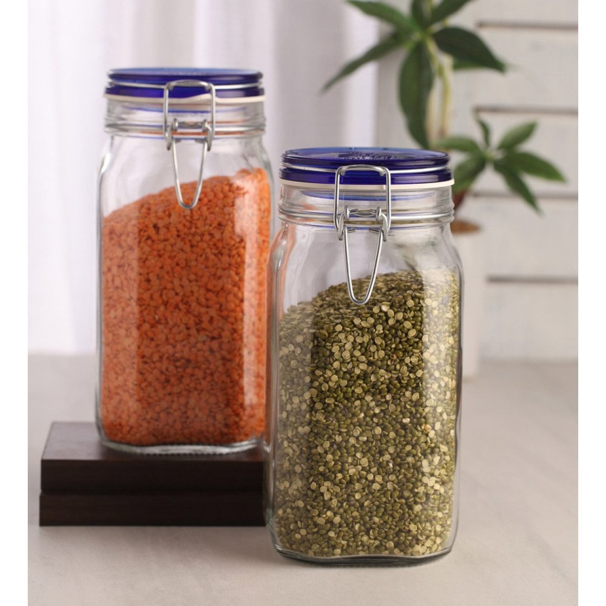 Стъклен буркан за съхранение на зърнени храни, варива, паста.
